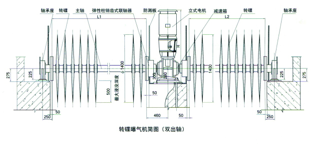 轉碟曝氣機簡圖(雙出軸)安裝及用戶須知